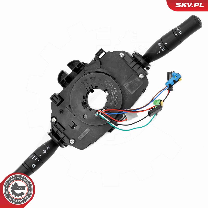 ar borta datora funkciju, ar gaismas pārslēgšanas funkciju, ar miglas lukturu funkciju, ar aizm. miglas luktura funkciju, ar stiklu tīrītāju un apskalotāju funkciju, ar stiklu tīrītāju darbības intervāla funkciju, ar tālo gaismu funkciju